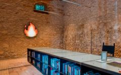 „On Fire“ ist eine Lightbox, die bei PLANETA im Studiolo Ulysses in Sambuca installiert ist.